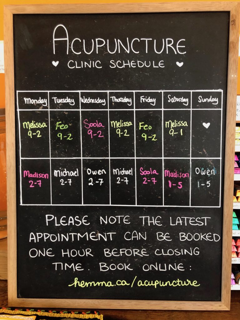 In order to insure a specific time please book appointments in advance by phoning, emailing, or booking online. Hours listed indicate range of available appointment times. Please remember to give us at least 24 hours notice if you need to change or cancel. There is a $15 fee for missed appointments.